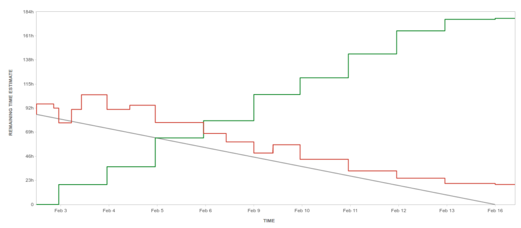 Figure 1 shows a burn-up that by the end of the sprint significantly exceeded the starting value for the original estimate.