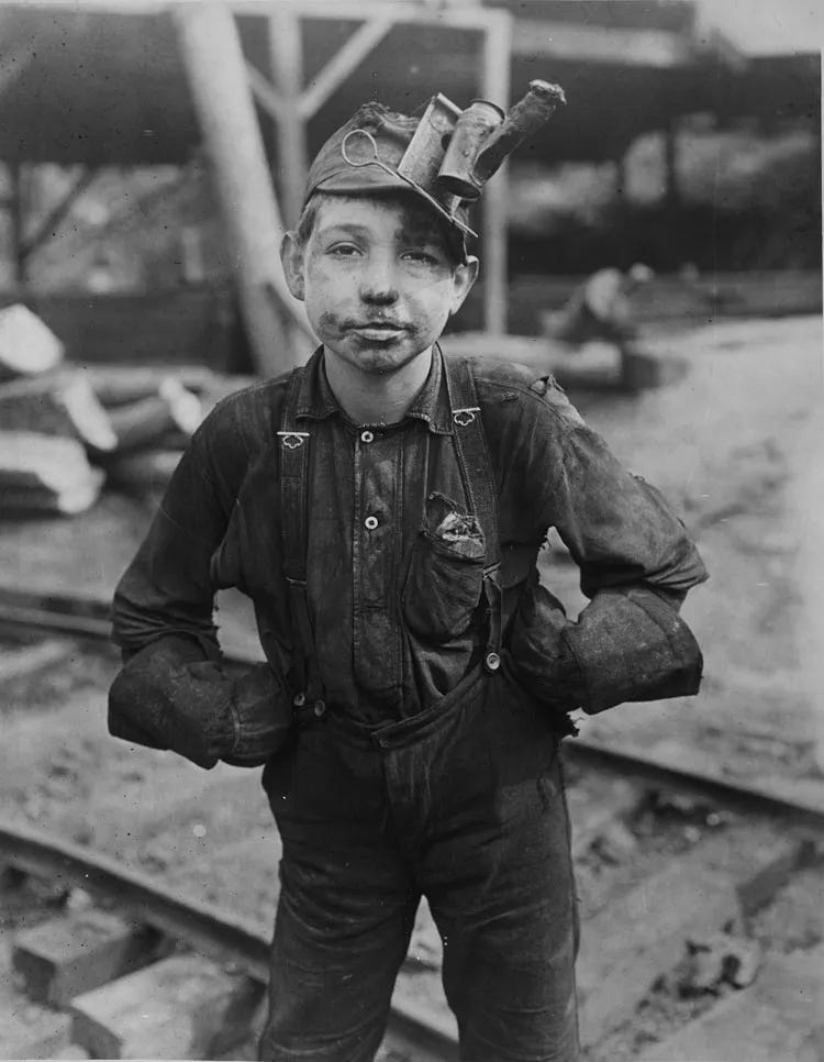 The urban workplace was little more than exploitation of other people's labor, including children, for the financial gain of a few. The wealth derived from labor was displaced in the industrial world. Factory and mining company owners saw their wealth grow without having to see the labor that created it while the factory worker saw little beyond a meager and predictable paycheck in exchange for the repetitive and often dangerous tasks that consumed their days. Greed more than necessity fueled the urban abuses of child labor. And while entire families may have worked at the same factory, they were separated from each other by factory spaces and repetitive tasks.