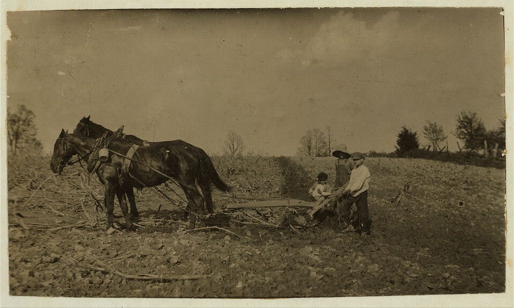 Once upon a time, the workplace was where a young person would make their transition from childhood to adulthood. In the distant past, the workplace was the great outdoors and conditions for this transition were immediate and physical, often extreme. Up until around 1870, when the Industrial Revolution started to kick in, for the majority of the population the "workplace" was on a farm (or ranch) and the transition to adulthood happened at an early age. It wasn't uncommon for an 8 or 9 year old to know how to hitch up a team of draft horses or run a tractor and help plow the fields. Necessity often drove the need for young children to help on the family farm. Families lived and worked together. Children who worked on the farm, even at simple tasks like household chores, were helping further the success of the family. The effects were immediate and obvious.